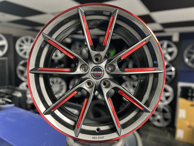 NIEUWE set velgen 19 inch 5x114.3 Borbet LX > antraciet + rood polish